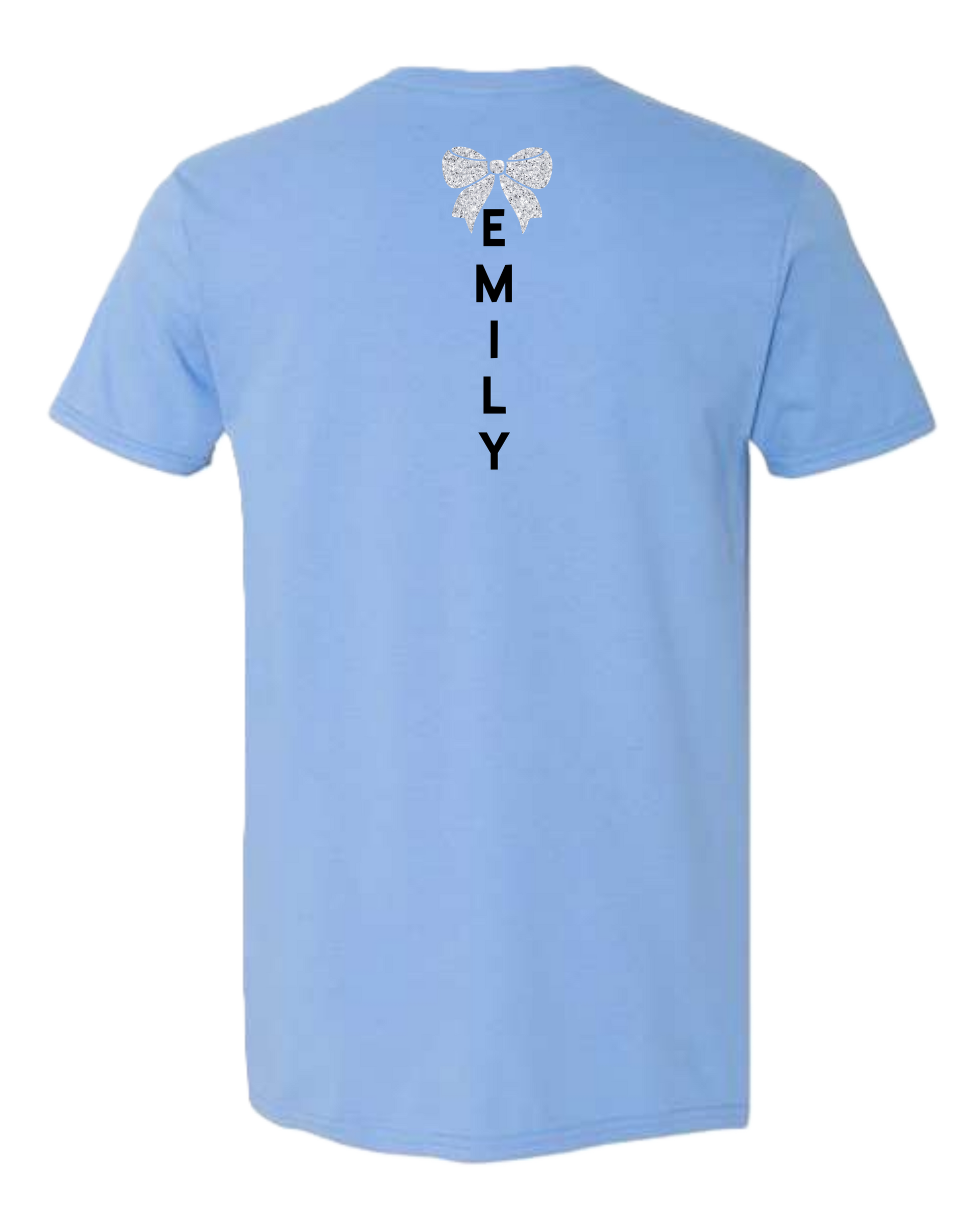 To add a name stop by the store or email us at CS@msjboutique.com with this order number and name. The bow is glitter silver and name is glitter black. Cost is $4 additional for the name.